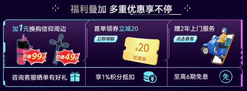3/6/12/24期免息分期:在大型促销节点(如618、双11、新品首发期间),用户购买指定产品可享受3期、6期、12期或24期的免息分期付款选项。通过与花呗等支付方式合作,有效降低了用户的一次性支付压力。