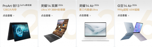 灵耀系列(含双屏、Air系列)与无畏系列(含Pro系列):主打轻薄与创新形态,适合移动办公与内容创作。